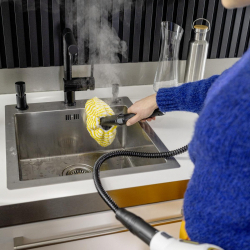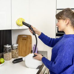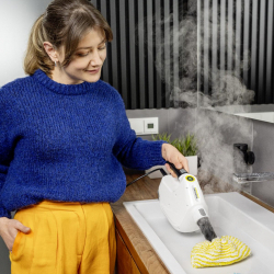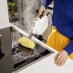 A Kärcher SC 1 Multi Comfort kompakt kézi gőztisztító vegyszermentesen tisztít és 30 másodperc alatt használatra kész a mélytisztításhoz. A készülék legfőbb előnye a csomagban található hosszabbító tömlő, amely még rugalmasabbá teszi a munkát, és segít elérni a nehezen hozzáférhető helyeket is, mint a sarkok vagy a magas polcok. Kivehető víztartálya, cserélhető vízkőmentesítő patronja és LED-kijelzője a modern kényelmet és a hosszú élettartamot garantálja. Kompakt kialakítása kényelmes használatot és egyszerű, helytakarékos tárolást biztosít. A kijelzőn folyamatosan nyomon lehet követni a gőztisztító üzemmódjait.