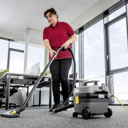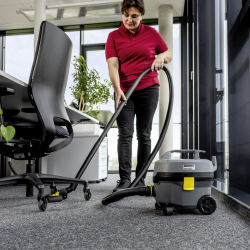 A kompakt T 7/1 Classic Adv szárazporszívó rendkívül halkan, 62 dB(A)-vel működik, és kiváló szívóerejének köszönhetően ideális szőnyegekhez és kemény felületekhez. Kis súlyának és ergonomikus fogantyújának köszönhetően könnyen szállítható egy kézzel, akár lépcsőn és lépcsőfokokon is. A két fix és két kormánygörgővel felszerelt alváz jó utófutási tulajdonságokat biztosít, az ergonómikusan kialakított kanyar pedig fáradságmentes munkavégzést tesz lehetővé, még hosszú munkák során is. A 7 literes tartályt körkörös ütközőperem védi, amely megakadályozza a falak, a bútorok és magának a garatnak a sérülését. A T 7/1 Classic Adv dugaszolható tápkábele 7,5 méter hosszú, és a felhasználó gyorsan kicserélheti. A felszereléshez alapfelszereltségként gyapjú szűrőzsák is tartozik.
