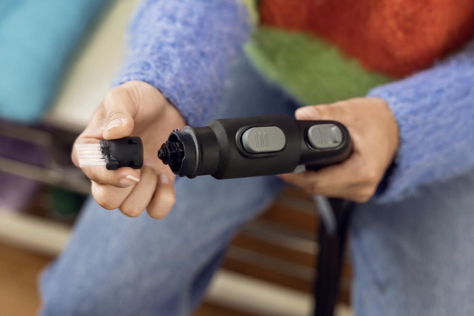 Gyors és cseppmentes cipőtisztítás: a Cipőtisztító fej tökéletes kiegészítő a sportcipők és alkalmi cipők alapos tisztításához. Kompatibilis az SE 3 Compact, 4, 5 és 6 kárpittisztító gépekkel.