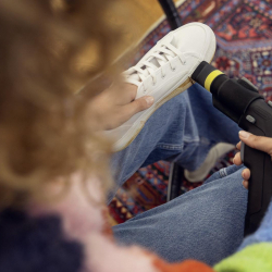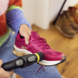 Az innovatív Kärcher cipőtisztító fej gyorsan, alaposan és cseppmentesen tisztítja a különböző típusú sportlábbeliket és alkalmi cipőket. Így például futócipők, túrabakancsok vagy akár divatos edzőcipők is könnyen tisztíthatók a házban, anélkül, hogy rendetlenséget okozna. A cserélhető kefekoronáknak köszönhetően a cipők talpa és felsőrésze is gyorsan és alaposan megtisztítható. A puha sörték lehetővé teszik a hatékony és kíméletes tisztítást, még a kényesebb anyagok esetében is. A tisztítás közbeni automatikus vízfelszívásnak köszönhetően a cipő pillanatok alatt megszárad. A cipőtisztító saját magát is tudja tisztítani, amely megakadályozza, hogy a tartozékok a tisztítási alkalmazások során beszennyeződjenek. A ciőtisztító fej tehát ideális, megbízható kiegészítője az SE 3 Compact, SE 4, SE 5 és SE 6 kárpittisztítógépeknek.