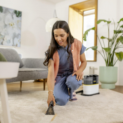 A Kärcher SE 2 Spot kompakt és könnyen kezelhető kárpittisztító, amely tökéletes segítőtárs a kárpitok és textíliák gyors, célzott folt- és szennyeződéseltávolításához